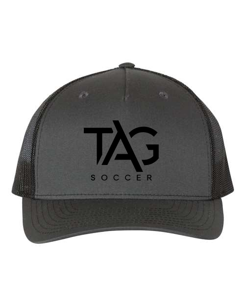 TAG Soccer | Embroidered Five Panel Trucker Hat (Charcoal/Black)
